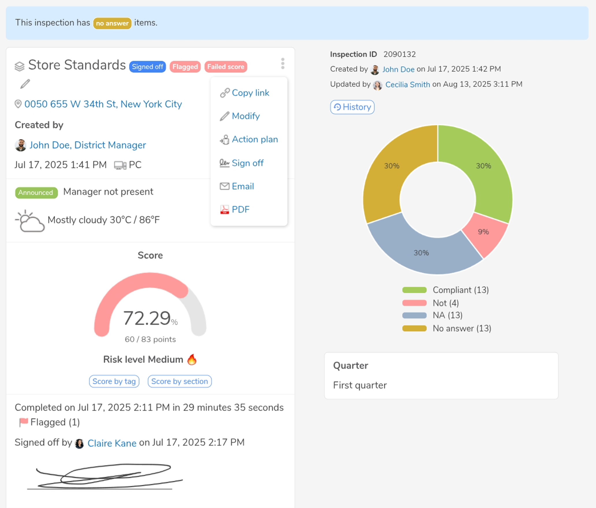 Kommunicera, distribuera och spåra initiativ genom checklistor, uppgifter, handlingsplaner, foton och signaturer